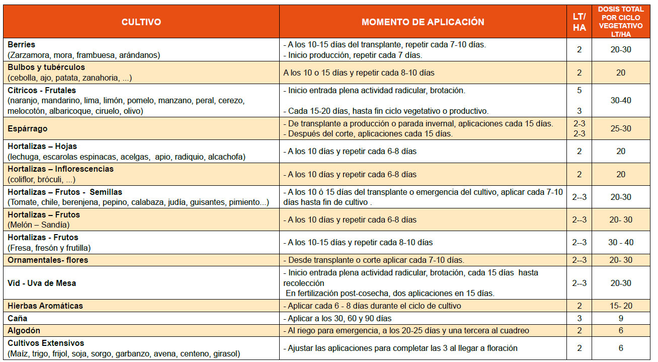 Descripción del producto: Bioestimulante radicular a base a ácidos fúlvicos y aminoácidos y calcio. Corrector de salinidad, promueve desarrollo del sistema radicular mejorando la nutrición . Modo de empleo: Incorporar en la zona de influencia de las raí­ces mediante riego, por goteo, aspersión, inmersión, microaspersión, que asegure la incorporación del producto en la zona radicular. Se aconseja su utilización durante todo el ciclo vegetativo, desde transplante, desarrollo vegetativo, floración, desarrollo de órganos a recolectar, así­ como para superar situaciones de estrés.