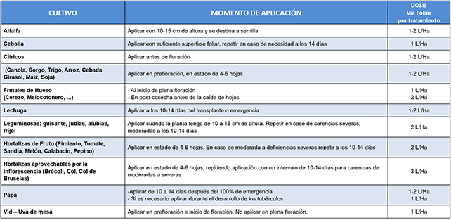 Descripción del producto: Bionutiente en base Boro Etanolamina para aplicación foliar, tanto en cultivos extensivos como en frutales, vid, cí­tricos y hortalizas. Modo de empleo: Aplicado en prefloración mejora la germinación del polen, el desarrollo del tubo polí­nico, por ende la fecundación y la formación de frutos y granos. En frutales y hortalizas disminuye incidencia de desórdenes fisiológicos por déficit de calcio.
