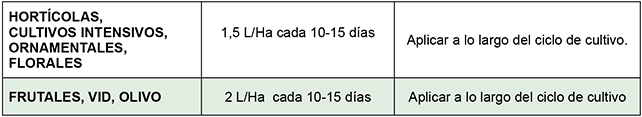Aplicado foliar, o por fertirriego, en todo tipo de cultivo extensivo o intensivo, previene y corrige carencias de hierro, zinc, manganeso, cobre, boro y molibdeno.