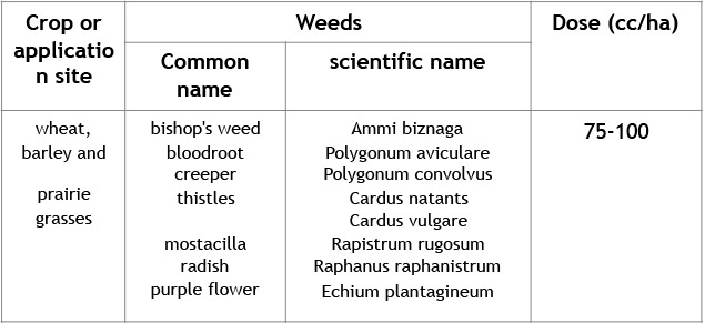 Characteristics of the product: Systemic herbicide, hormone action. It controls broadleaf weed, annual and perennial leaf.